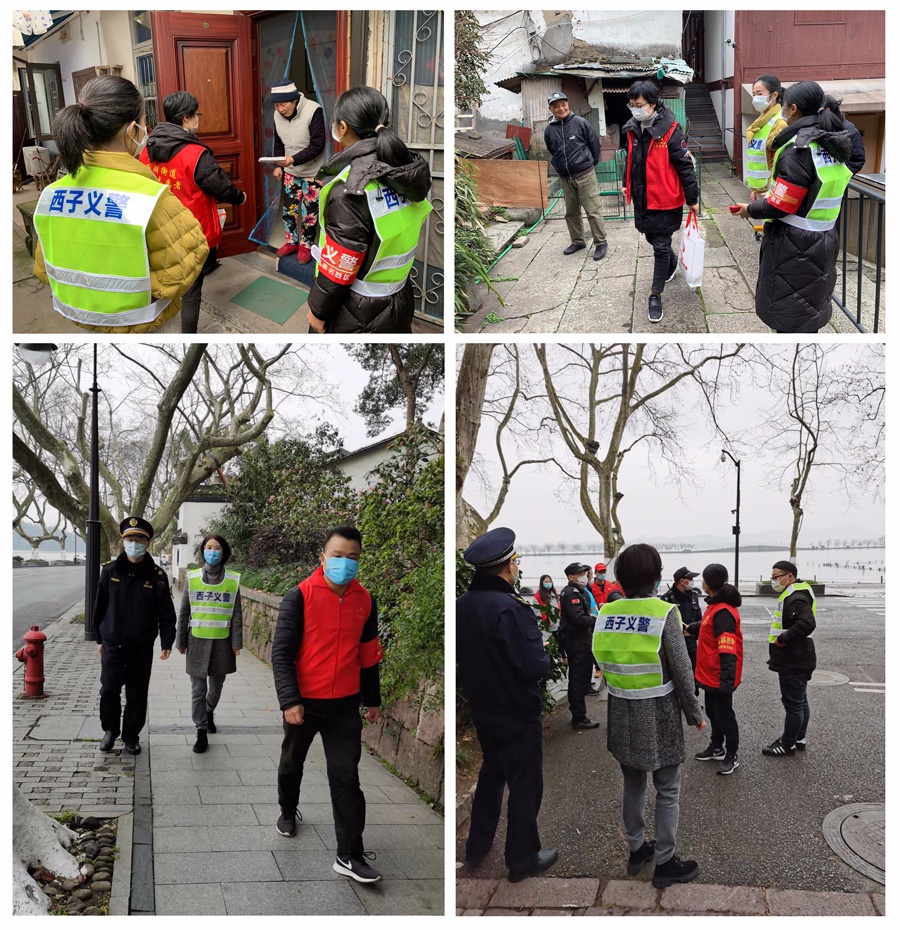 活動中,黨員防疫志愿服務隊員們以“西子義警”的身份,走訪社區(qū)居民,開展防疫知識宣傳活動,入戶調(diào)查社區(qū)外來人員情況,并為社區(qū)獨居老人送上口罩等防疫物資;服務隊員還積極支援社區(qū)防疫崗,為進出人員測體溫、做好人員信息登記;并在北山路、斷橋、白堤、孤山路等西湖沿線路段進行防疫巡邏,督促行人戴口罩,并進一步宣傳防疫知識。“西子義警”深入一線的防疫志愿者服務活動作為疫情期間西湖邊的獨特風景線,還受到了新浪網(wǎng)和杭州交通91.8電臺的視頻直播。此次活動中,置業(yè)支部黨員們積極助力構(gòu)建群防群治的嚴密防線,為打贏疫情阻擊戰(zhàn),體現(xiàn)自身的責任和擔當。
