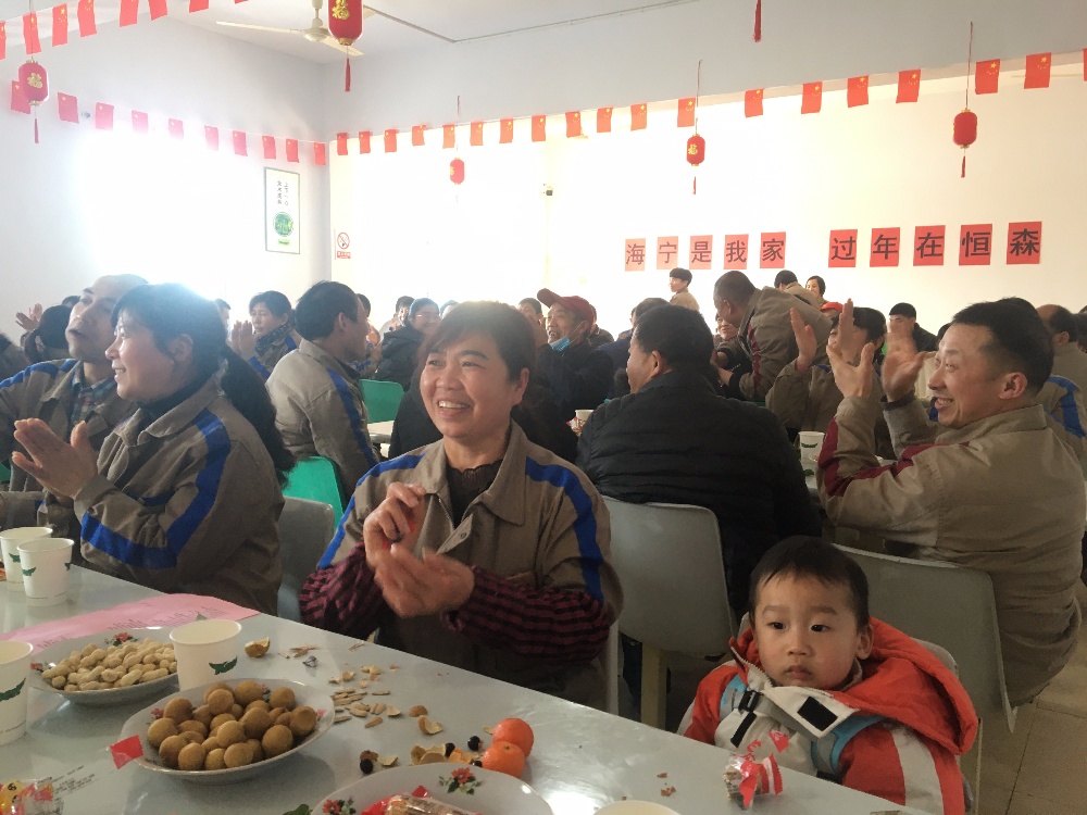 一片歡聲笑語中員工紛紛到來,有序簽到入場,明亮的餐廳,公司管理層早已布置,準備好了整齊干凈的桌椅,掛起大紅燈籠,拉起了曖心的字語,備了瓜子、花生、糖果等各種小食。待大家入座后,首先公司負責人李林虎表達了對到來的留廠員工的感謝。隨后一個有趣的互動小游戲正式拉開了茶話會的序幕,輕松歡快的氛圍中,李總帶大家回顧了2020年公司的經(jīng)歷,分享了所取得的成績,并希望大家在新一年的工作中共同努力把恒森打造成充滿溫暖、互助友愛的大家庭。員工們邊吃邊聊邊表演著自己的拿手節(jié)目,相互拉著家常和探討著新的一年中要怎樣為公司的發(fā)展貢獻自己的力量,現(xiàn)場氣氛熱火朝天。一首《相親相愛的一家人》唱出了所有在會人的心聲,公司李總還親自為員工送上了新春祝福、慰問品和曖心紅包。他們紛紛表示:海寧是我家,過年在恒森,雖距家千里但也能感受到了家的溫暖。此次活動在大家洋溢著幸福笑臉的大合影中拉上帷幕。