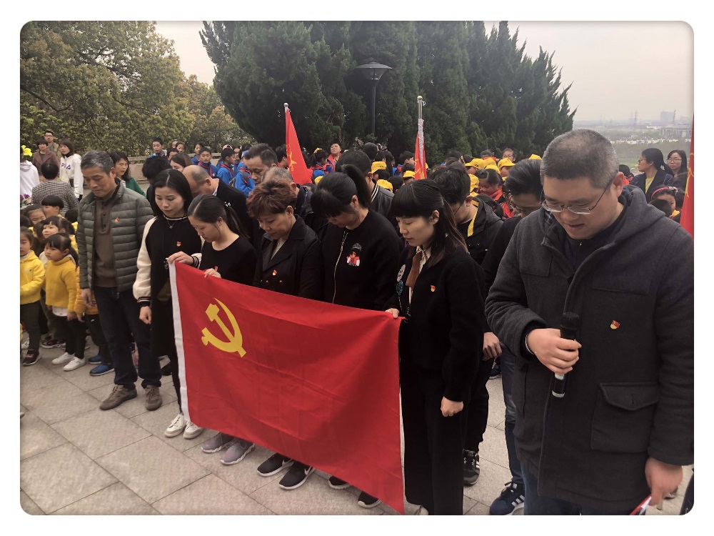 接著,黨員們拾級而上,一氣呵成來到了高高在上的紀(jì)念碑前,看到碑上刻著八個(gè)大字:革命烈士永垂不朽。全體黨員在烈士紀(jì)念碑前默哀1分鐘, 由李江東帶領(lǐng)全體人員面對黨旗鄭重重溫了入黨誓詞,一字一句鏗鏘有力,充分表達(dá)了黨員們團(tuán)結(jié)一致,恪守黨員承諾、彰顯爭創(chuàng)模范黨員的決心。